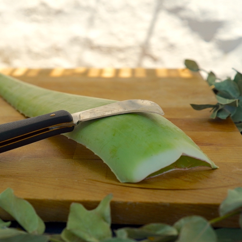 Due to its origin in Africa and the Arabian Peninsula, Aloe vera thrives in hot, arid conditions with minimal water requirements. Our region, characterized by the strong Andalusian sun, light well draining soil and moderate humidity levels, provides the ideal environment for cultivating Aloe vera. To promote optimal health and benefits of our plants, we enrich the soil with, coconut fiber, earthworm humus and some horse manure. The first cut is made when the plant is at least three years old, and the leaf color is dark green, indicating maturity.